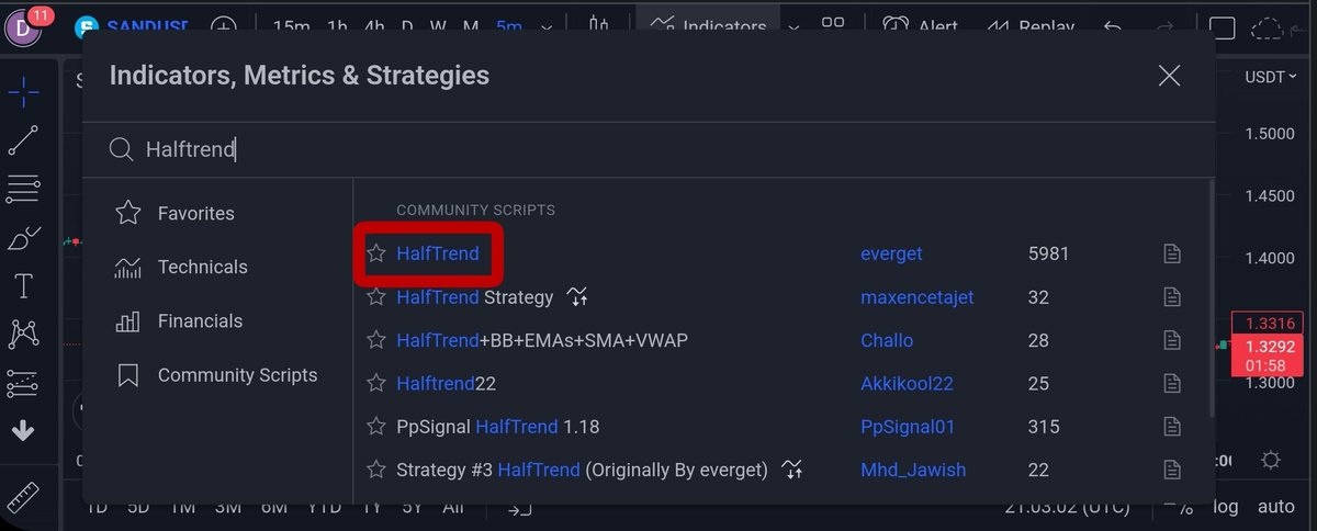 حالة البيع : عندما يكون مؤشر Half Trend باللون الأحمر ومؤشر RSI يساوي 90 أو أكثر