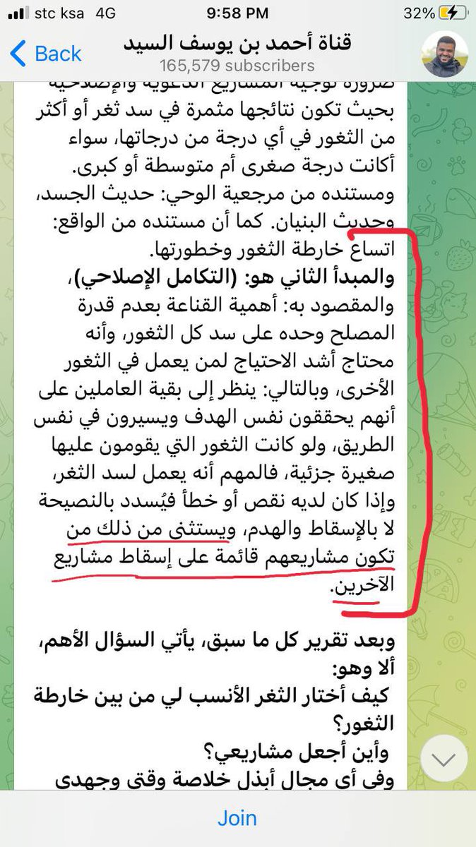وللأسف أنه دائما يقول أن لكل عامل للإسلام خارطة ثغور الخ، وعندما اشتغل مخالفيه ببعض الثغور -التي يهمشها هو-أقام الدنيا عليهم=
