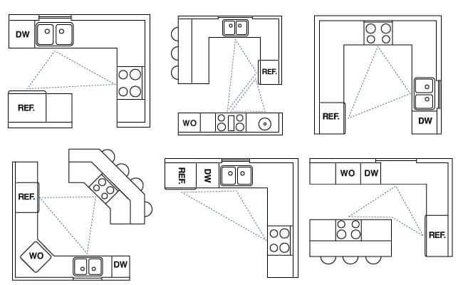 و هذه المحطات هي ما يشكل رؤوس "مثلث الحركة"  بحيث تقاس أضلاع المثلث من مركز كل من حوض الغسيل , الثلاجة , الغاز.