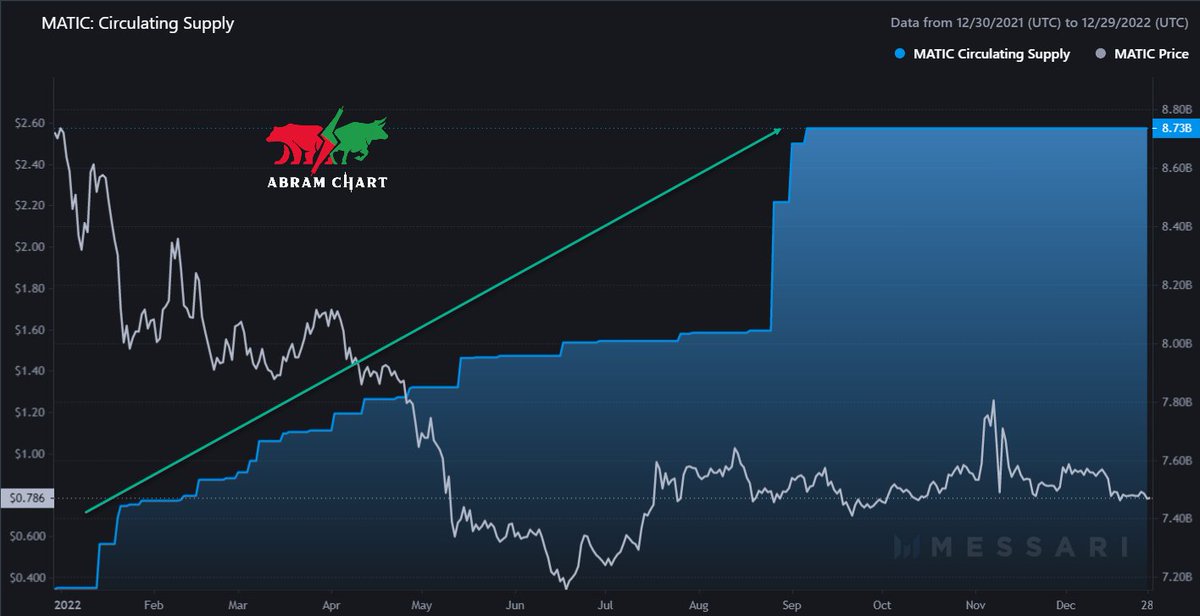 هذه النسبة كانت اقل مع بداية 2022 لكنها ارتفعت بشكل كبير حتى شهر سبتمبر الماضي وهذا جيد للمشروع حتى الان شاهد توزيع Circulating Supply على الشارت خلال هذه السنة