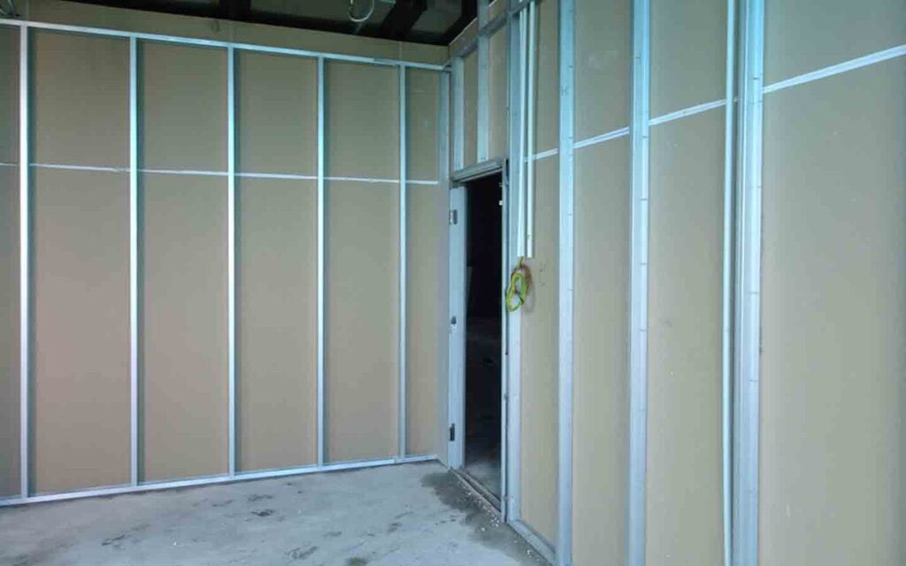 ١- حائط الجبس : تعتبر مادة الجبس من افضل المواد التي تمتص الاهتزازات التي تنتج عنها الصوت