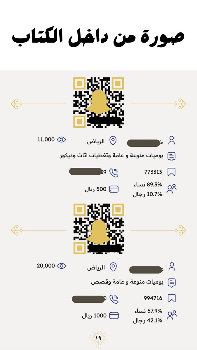 وعلى الطاري عندنا دليل جمعنا فيه 50 مشهور على سناب شات وصنفناهم وصنفنا متابعينهم وعدد مشاهداتهم اصغرهم من 10 الاف مشاهدة واقواهم وصل 880 الف مشاهدة اقل اعلان يبدا من 500 ريال واغلى اعلان 2000 ريال كسعر حصري لملاك الدليل استخدم الكود kht يخصم 30% من الرابط