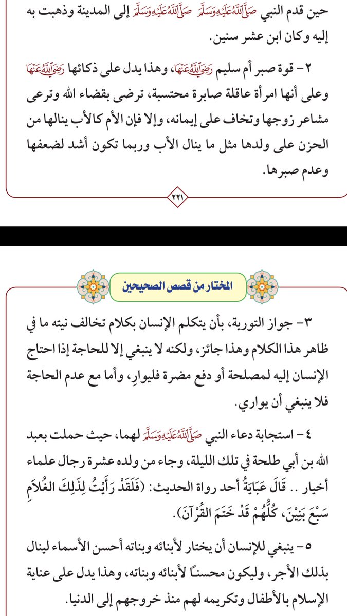 تَصَنَّعَتْ لَهُ أَحْسَنَ مَا كَانَ تَصَنَّعُ قَبْلَ ذَلِكَ فَوَقَعَ بِهَا فَلَمَّا رَأَتْ أَنَّهُ قَدْ شَبِعَ وَأَصَابَ مِنْهَا قَالَتْ يَا أَبَا طَلْحَةَ أَرَأَيْتَ لَوْ أَنَّ قَوْمًا أَعَارُوا عَارِيَتَهُمْ أَهْلَ بَيْتٍ فَطَلَبُوا عَارِيَتَهُمْ أَلَهُمْ أَنْ يَمْنَعُوهُمْ...