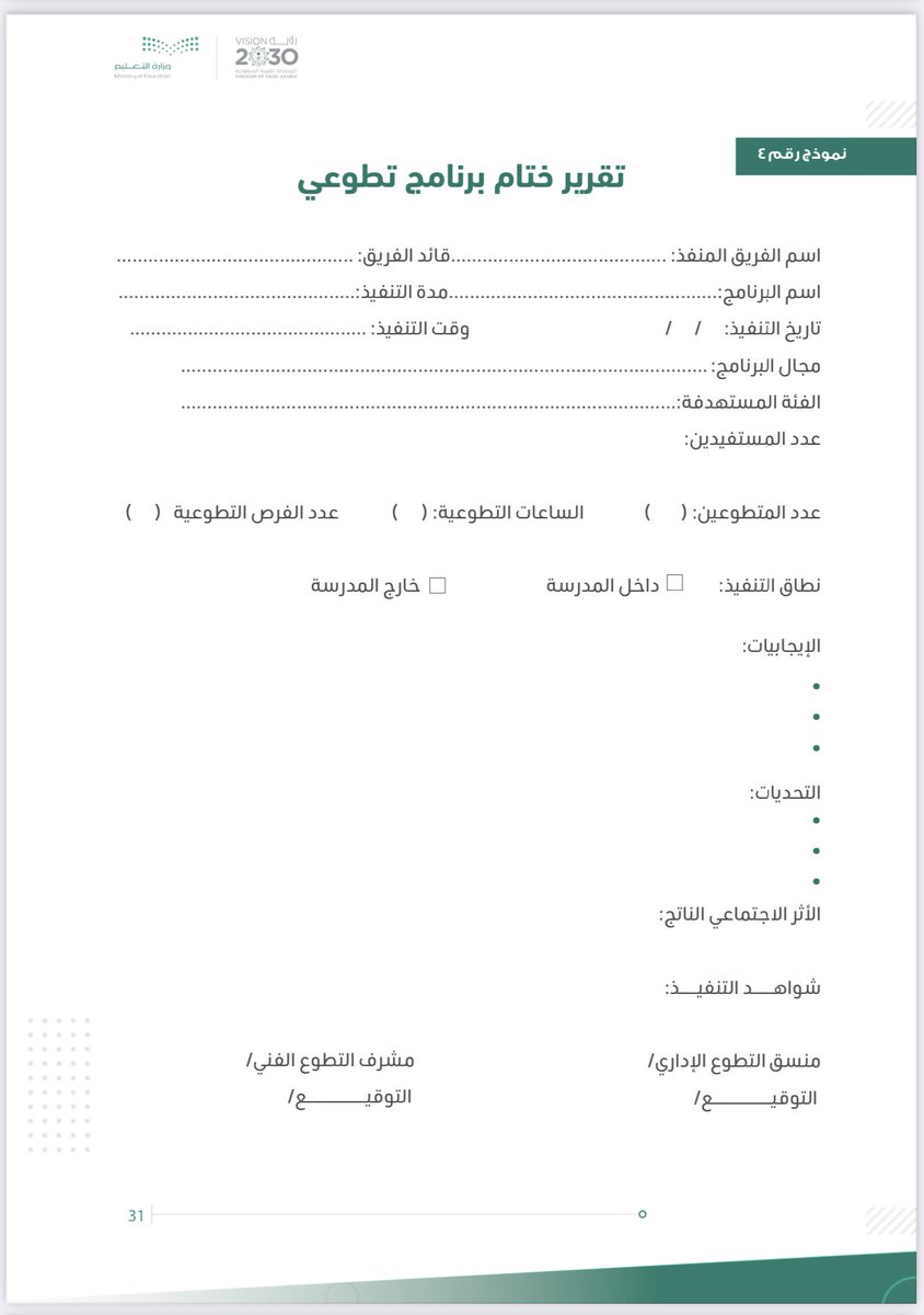 🔸نموذج تقرير ختام برنامج تطوعي.