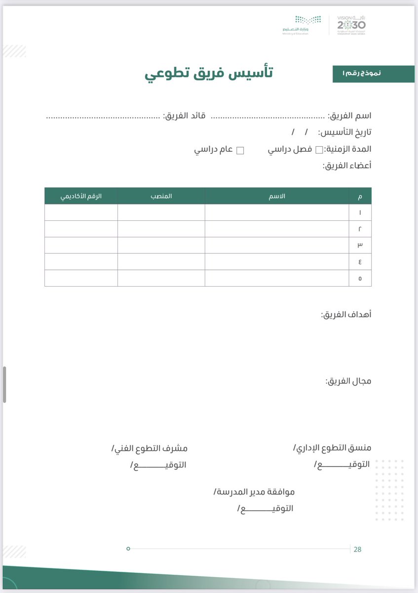 🔸نموذج تأسيس فريق تطوعي.