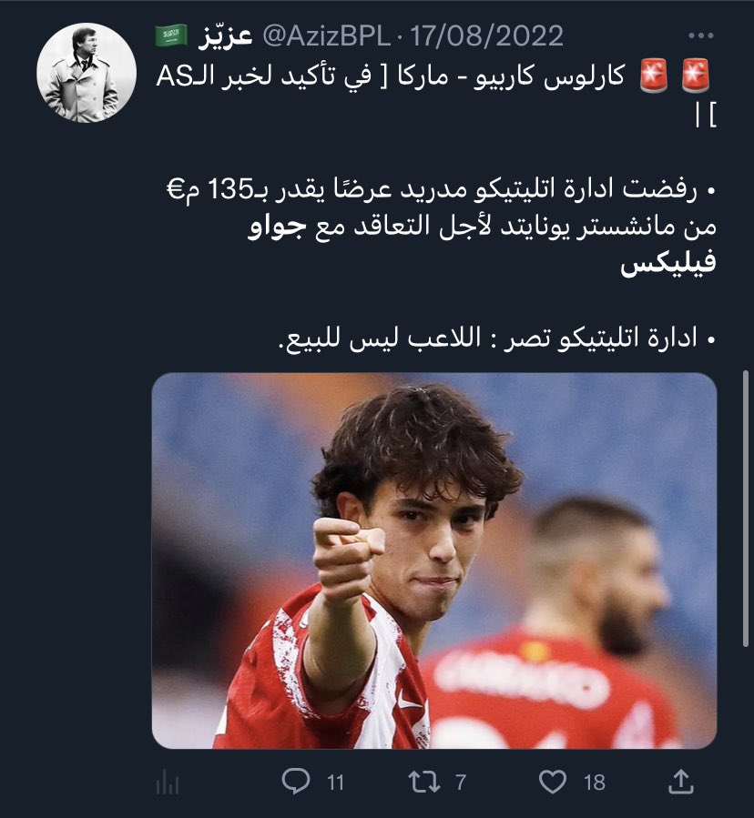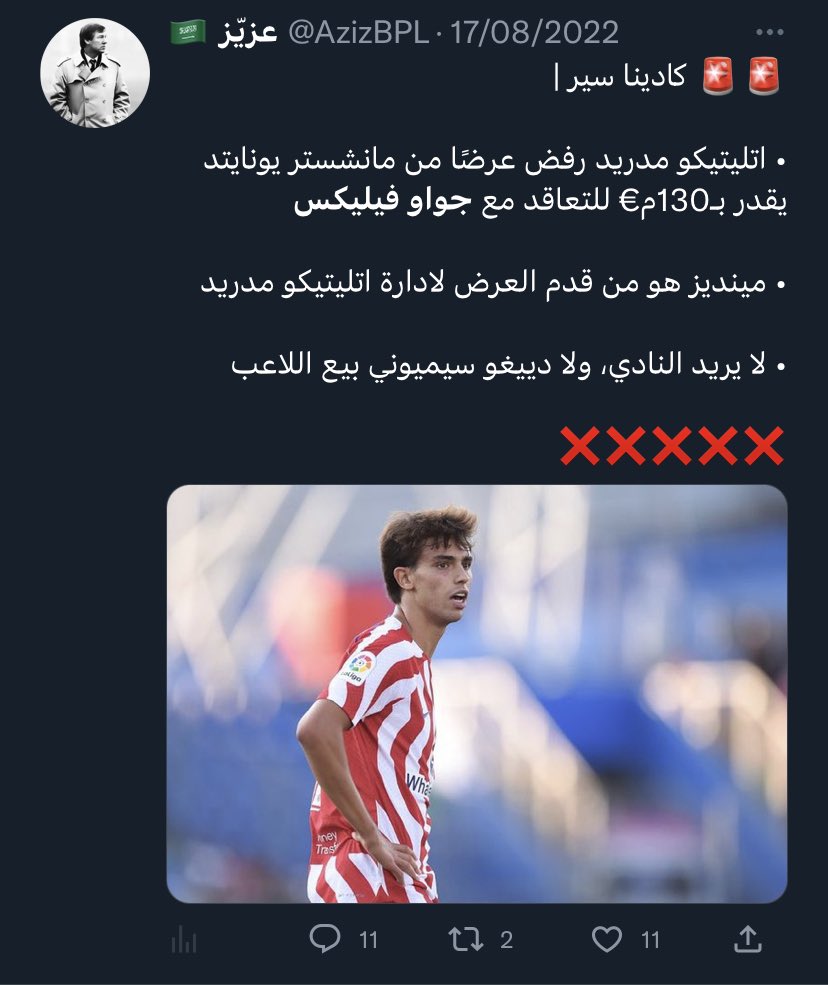 لكن من غير المنطق كذلك أن يتوجه مانشستر يونايتد للاعب بهذه المبالغ ومدربه لا يرغب بالتوقيع معه، حتى لو لم يكن يرغب بهذا البروفايل حالًا، إلا أني استنبط أن بروفايل جواو مرغوب فيه من قبل إيرك تين هاخ عاجلًا أم آجلًا