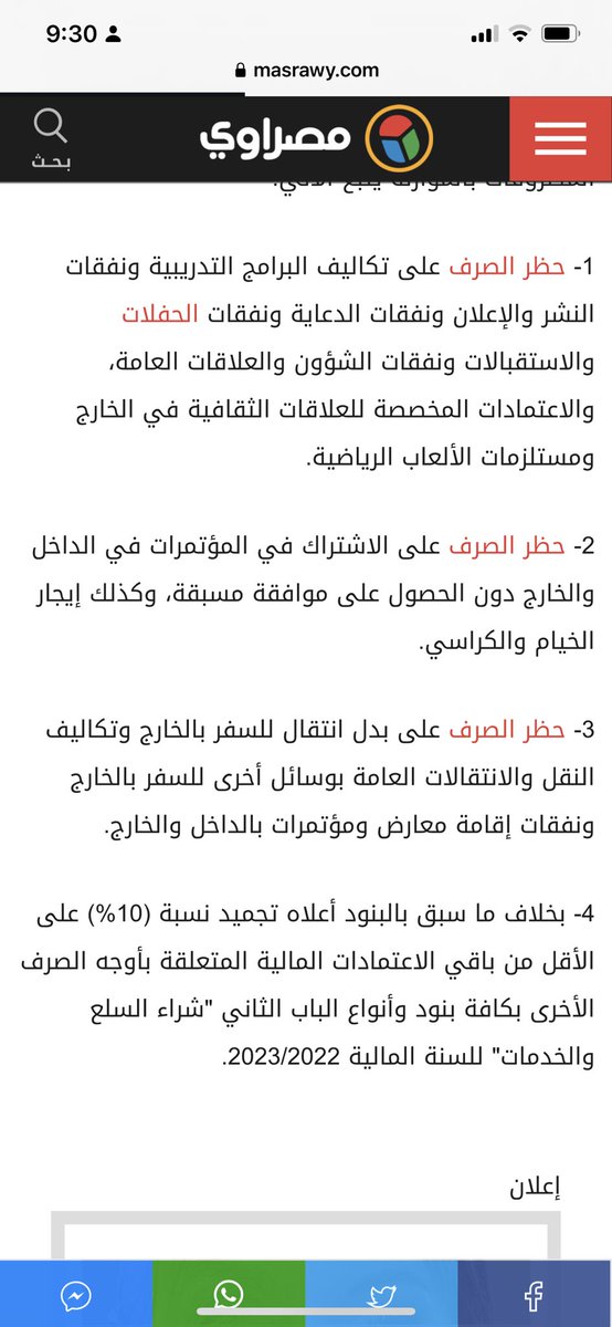 ٤- بخلاف ما سبق بالبنود أعلاه تجميد نسبة (10%) على الأقل من باقي الاعتمادات المالية المتعلقة بأوجه الصرف الأخرى بكافة بنود وأنواع الباب الثاني "شراء السلع والخدمات" للسنة المالية 2023/2022.
