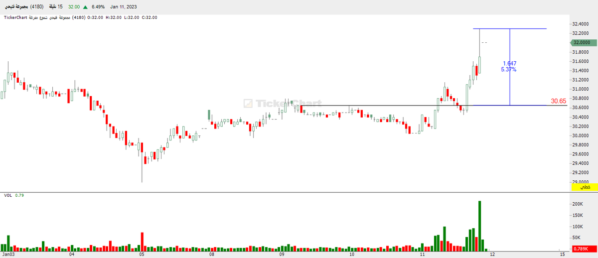 وكذلك على فاصل الربع ساعة كون شمعة كميات وتم الاغلاق اعلاها وحقق أكثر من 3.5%