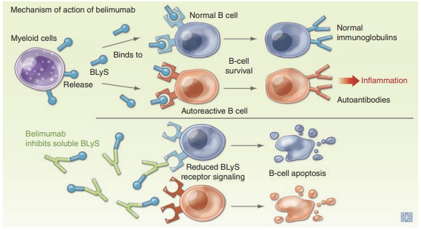 بشكل طبيعي B cells تفرز antibodies في الجسم عشان تحارب الأجسام الغريبة مثل البكتيريا لكن عند مريض Lupus تتحفز ال B cells في إفراز antibodies أو Autoantibodies تهجم على أنسجة الجسم نفسها