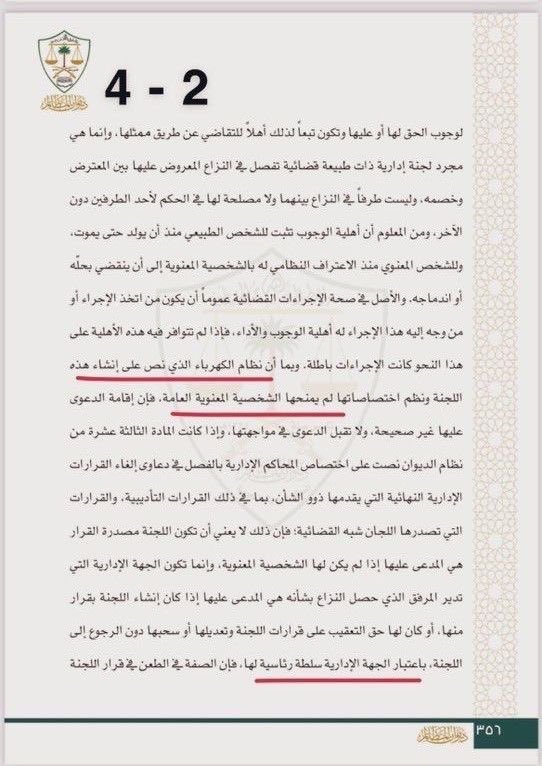 4/ فاللجنة مجرد لجنة إدارية ذات طبيعة قضائية تفصل في النزاع المعروض عليها بين المعترض وخصمه، ولذا فإن اللجان لا تكون طرفاً في النزاع، وبما أن نظام الكهرباء الذي أنشأ هذه اللجنة لم يمنحها الشخصية المعنوية العامة فإن إقامة الدعوى عليها غير مقبول لانعدام الصفة.