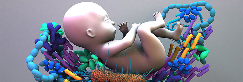 7.المايكيروبيوم عنده اخذه من الام في قناة الخروج لحظة ولادته عالي الجودة ومكتمل وهنا عليك ان تعرف اهمية وجود الميكروبيوم والمحافظة عليه