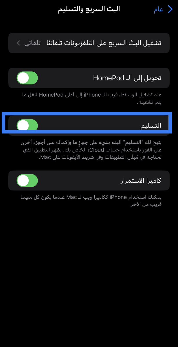 راح اذكر مجموعه من المميزات اللي ربما تفيدك، لكن علشان كل شيء يشتغل، لازم تكون الاجهزة كلها بنفس الApple ID و على نفس شبكة الوايرلس
