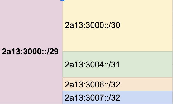 Lo que me estaba proponiendo @aalmenar era no anunciar UNA PARTE de mi /29 de IPv6.