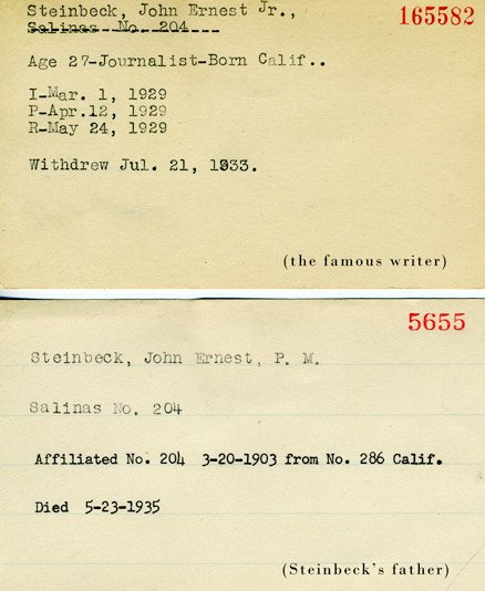 انتماء الكاتب الأمريكي المعروف جون ستاينبيك هو و والده الى الماسونية