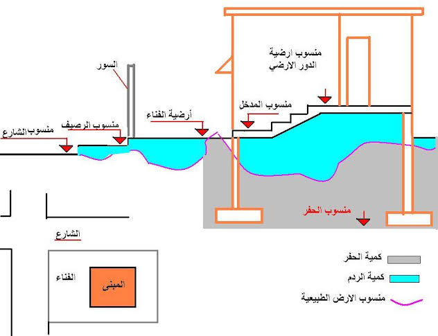 فإذا كان هناك تقرير دراسة تربة فسيكون محددا فيه منسوب التأسيس. ☑️