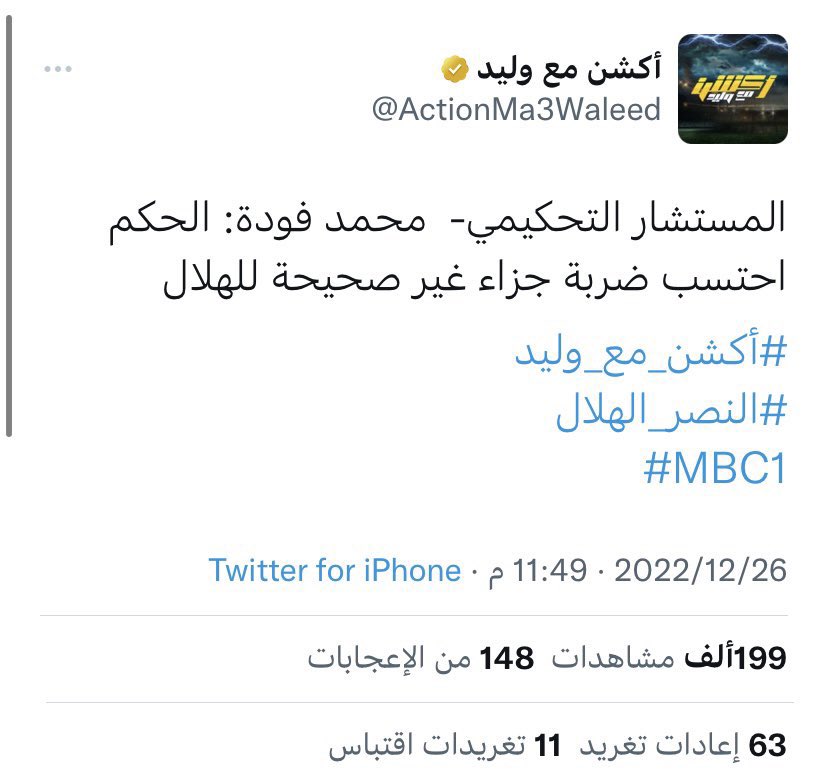 الهلالي يكون متواجد في الساحة او الفار ،، حتى بوجود الحكام الاجانب