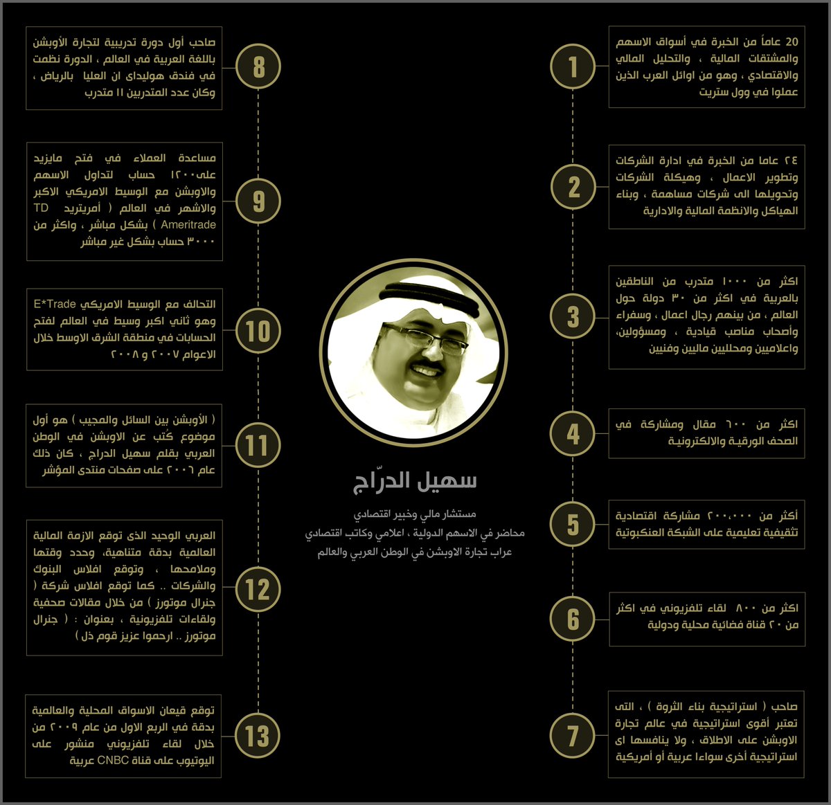 المدرب الحصري للدورة الاحترافية لتجارة #عقود_الأوبشن ، ودورة الإتجار بـ #الأسهم_الأمريكية ، ودورة التحليل المالي لمتداولي #الاسهم_السعودية ، متداول بالأسواق الأمريكية منذ عام 1998، وهو أول من أدخل تجارة الأوبشن للوطن العربي