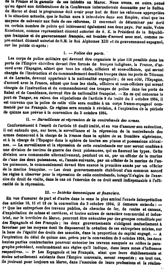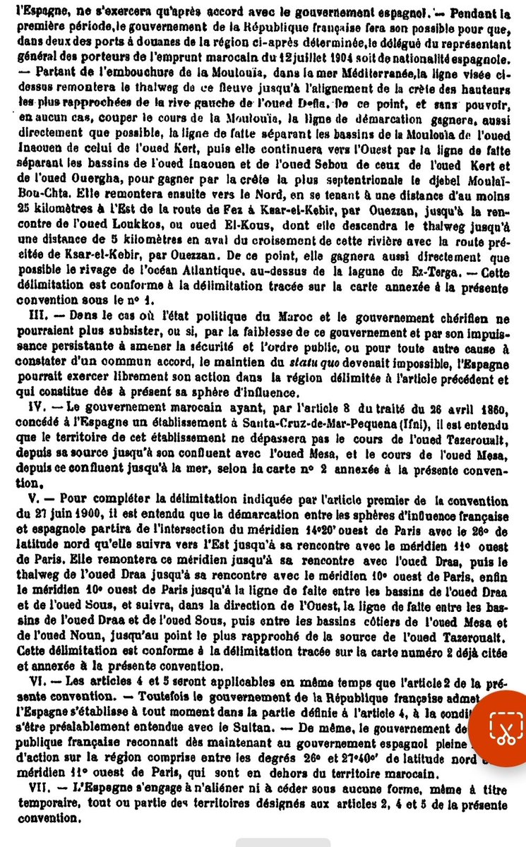 فرنسا من ادخلت اسبانيا للمغرب بنص الاتفاق اعلاه.. وطيلة 44 سنة لولا فرنسا لما صمدت اسبانيا اسبوعا واحدا في المغرب خصوصا خلال فترة حرب الريف وفترة الحرب الاهلية الاسبانية 1936_1939 وسنوات جهاد الشيخ ماء_العينين وقبائل الصحراء جنوب المغرب وفي ما سيسمى لا حقا موريتانيا