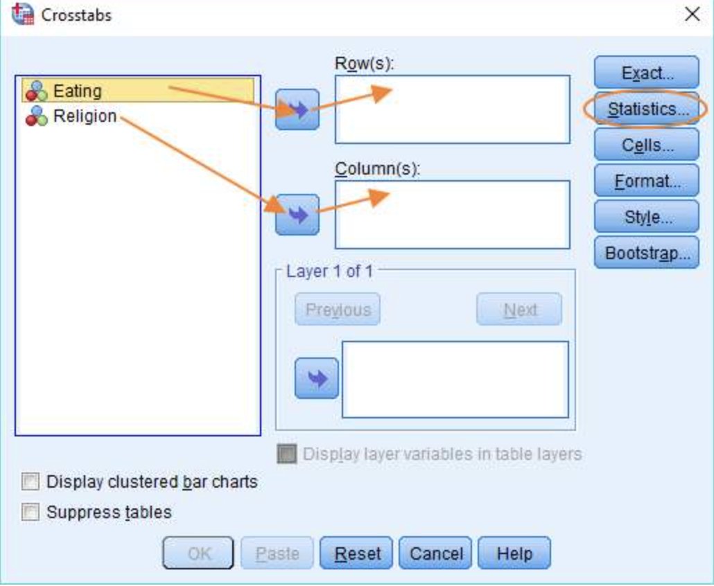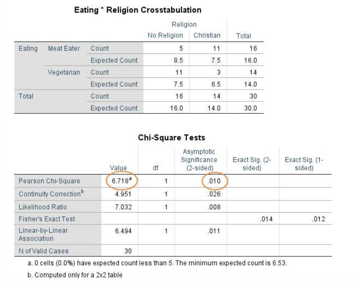 ضع في اعتبارك مجموعة بيانات تحتوي على 1000 سجل ولها متغيرات - الديانة ونوع الطعام. نود اختبار ما إذا كانت هناك أي علاقة بين الديانة ونوع الطعام.