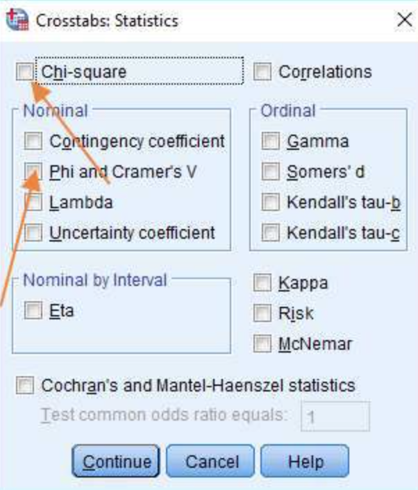 أثناء التحقق من الارتباط بين المتغيرات الفئوية ، من الممكن فقط معرفة ما إذا كانت المتغيرات لها أي ارتباط . لا يمكن تقدير درجة الارتباط