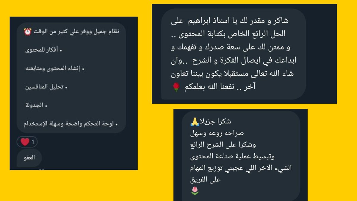 نقوم بتحليل التفاعل ونسبة زيادة المتابعين وطلبات العملاء،