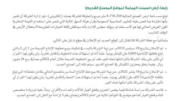 تنوي الشركة نقل الخط السابع من مصنعها القديم الى المصنع الجديد تبلغ طاقته الإنتاجية10000 طن كلنكر من المتوقع ان ينتهي في 2025
