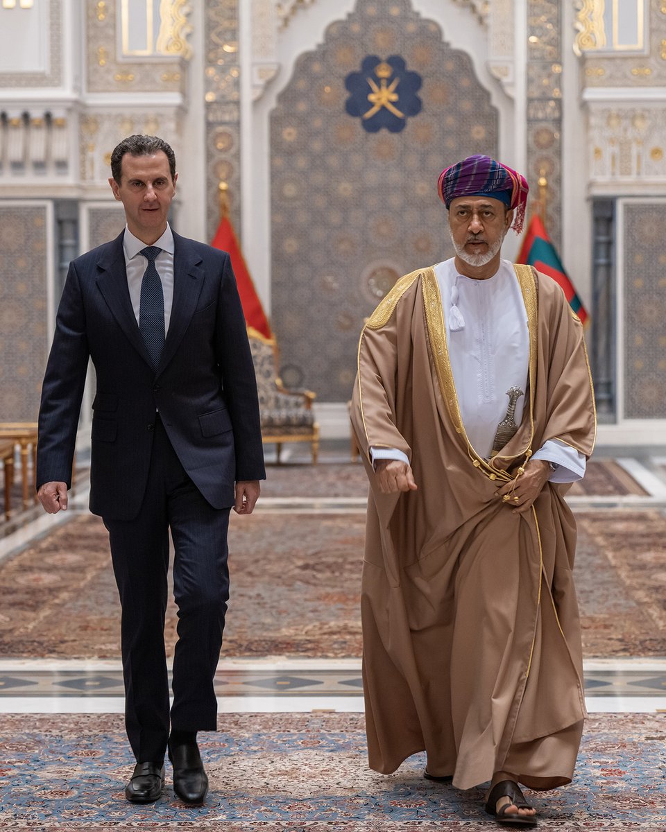 جلالةُ السُّلطان المعظم /حفظهُ اللهُ ورعاهُ/ وفخامةُ الرئيس السُّوري يعقدان جلسة مباحثات رسميّة بقصر البركة العامر، جدّد خلالها جلالتُه تعازيه ومواساته الصادقة لفخامة الرئيسِ الضيف وللشعب السُّوري الشقيق في ضحايا الزلزال المدمر الذي ضرب بلاده وجمهورية تركيا.