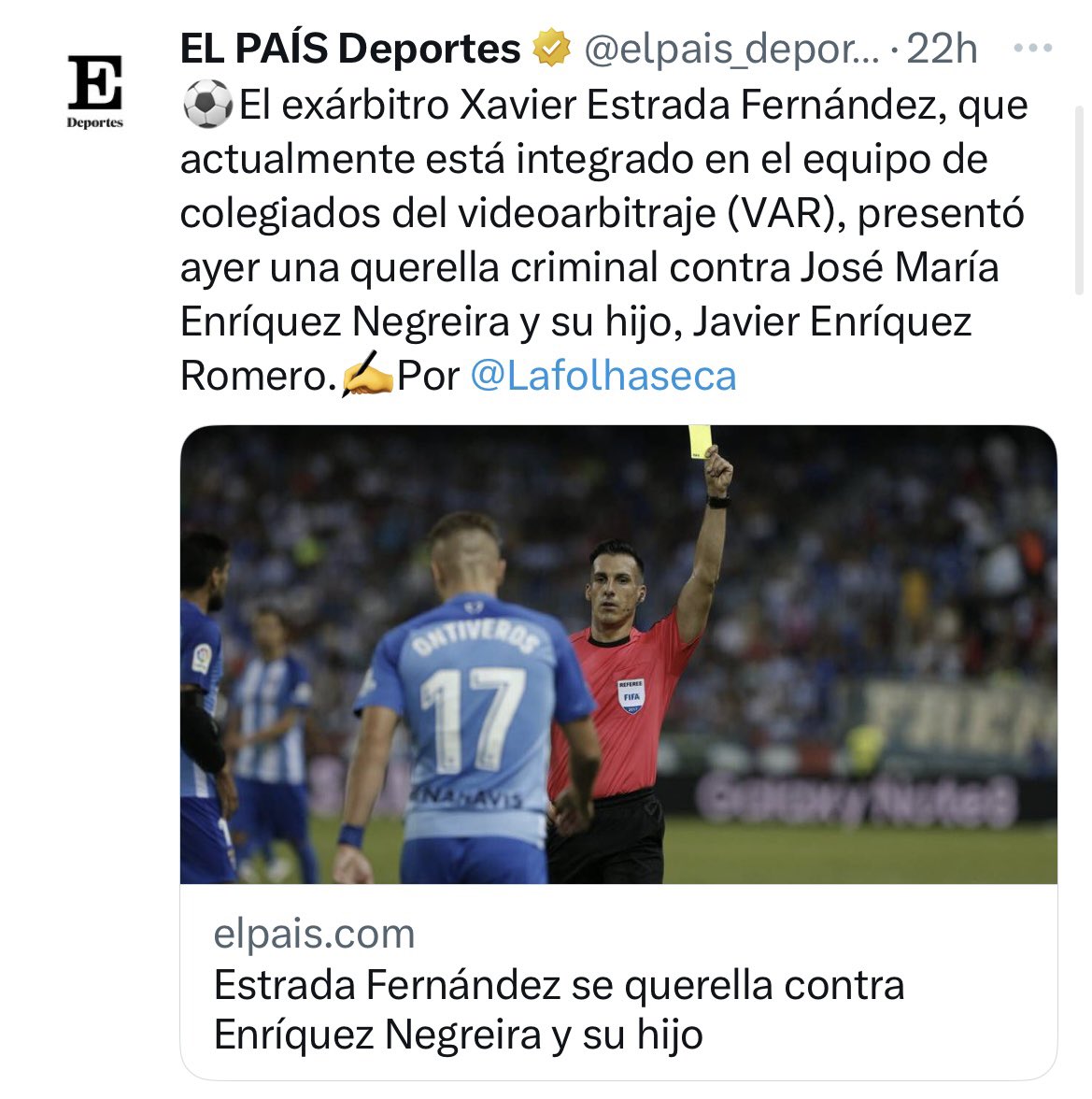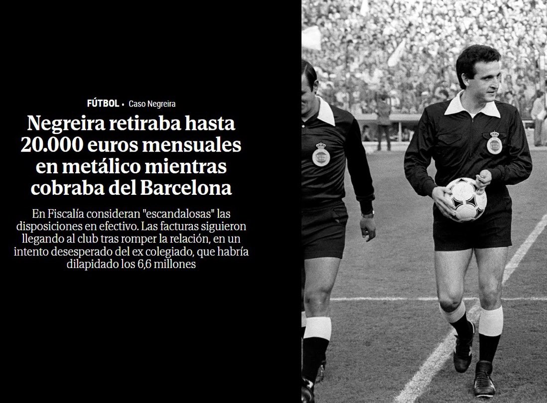 قدم إسترادا فرنانديز (حكم سابق في الدرجة الأولى) شكوى جنائية ضد إنريكيز نيغريرا وإبنه بتهمة الفساد والإحتيال الرياضي حيث "كان هدفه ضمان التحكيم لصالح نادي برشلونة" من 2003 إلى 2018.