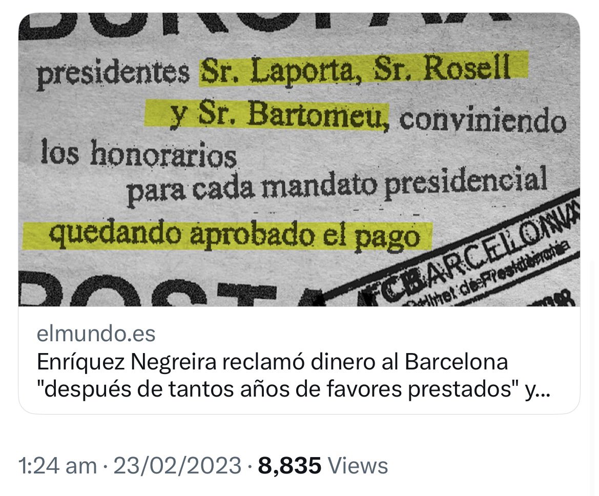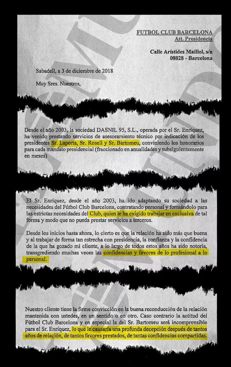 خافيير إنريكيز نيغريرا، لاعب سابق لبرشلونه وإبن نائب رئيس لجنة الحكام السابق الذي إستمر يدفع له برشلونه لأكثر من 20 سنة، يدخل مع الحكام للكامب نو قبل أسبوع فقط.