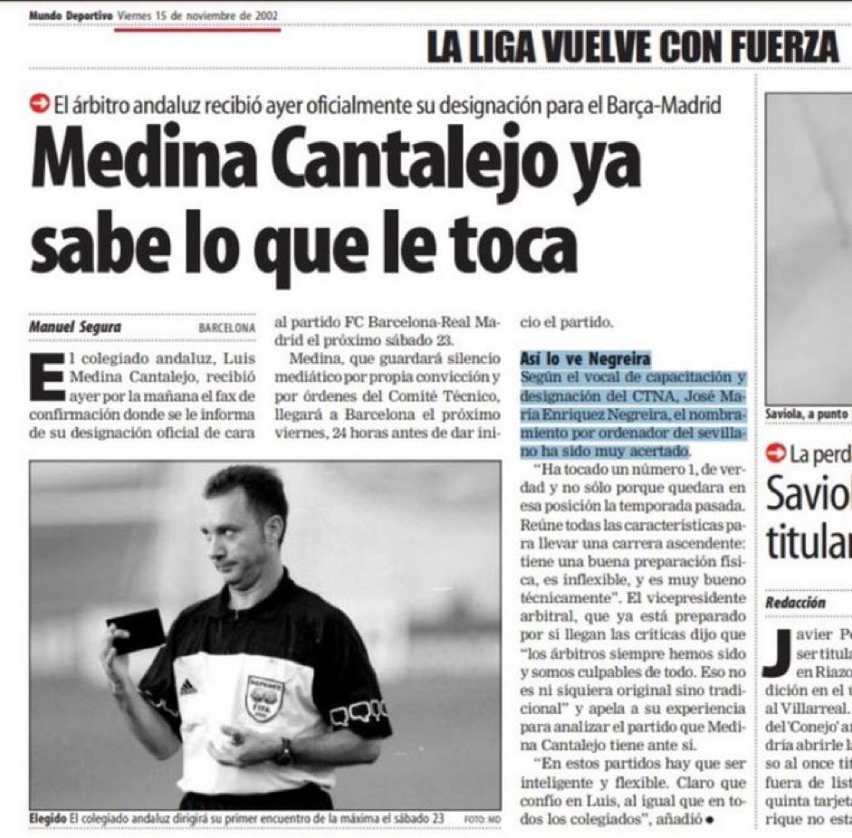 في كلاسيكو 2002 نيغريرا قام بتعيين كانتاليخو حكم للكلاسيكو.