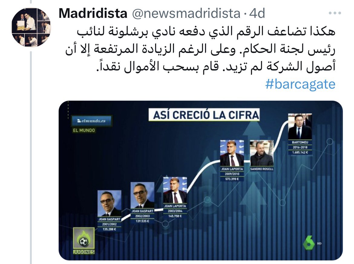 هكذا تضاعف الرقم الذي دفعه نادي برشلونة لنائب رئيس لجنة الحكام. وعلى الرغم الزيادة المرتفعة إلا أن أصول الشركة لم تزيد. قام بسحب الأموال نقداً.
