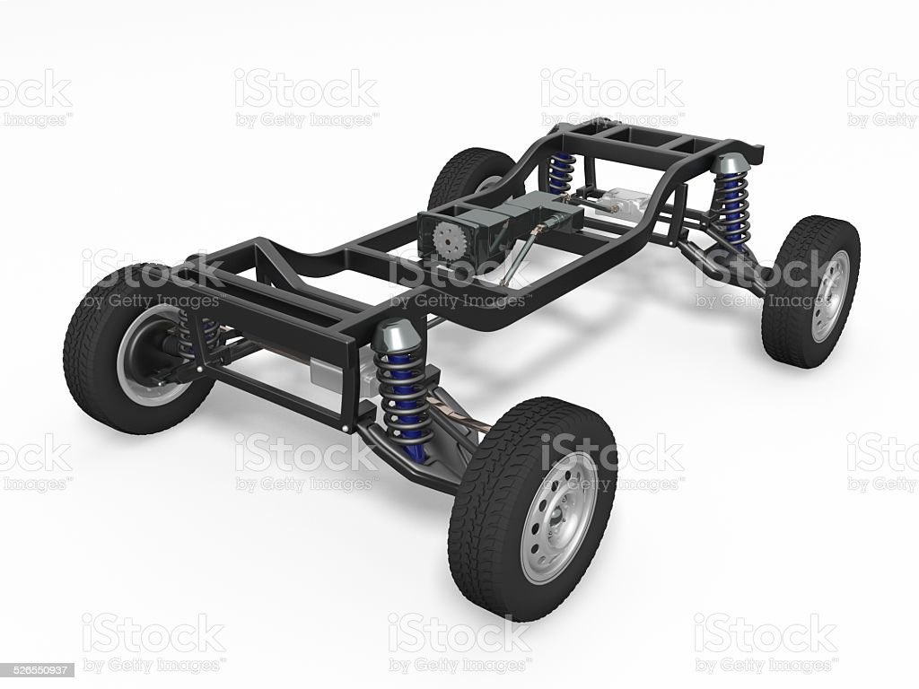 هذا شاصي سيارة على دفرنسات "صلبه متصله" بالأمام وبالخلف