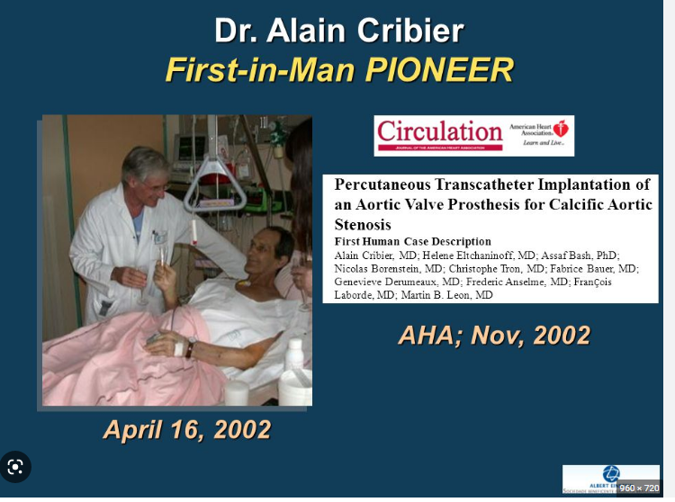 البروفيسور ألين كريبير. كان مديرًا لمختبر القسطرة في فرنسا في الثمانينيات. واجهت أحد أكبر التحديات في أمراض القلب وهو تضيق الأبهر الشديد لدى كبار السن (15٪).