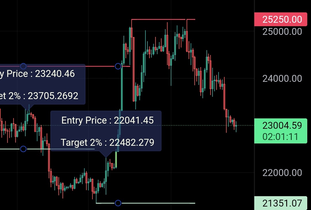 👾 الإشارات على الشارت تتضمن وقت انطباق شروط الاستراتيجية مع كتابة السعر عند الهدف المبدئي 2%