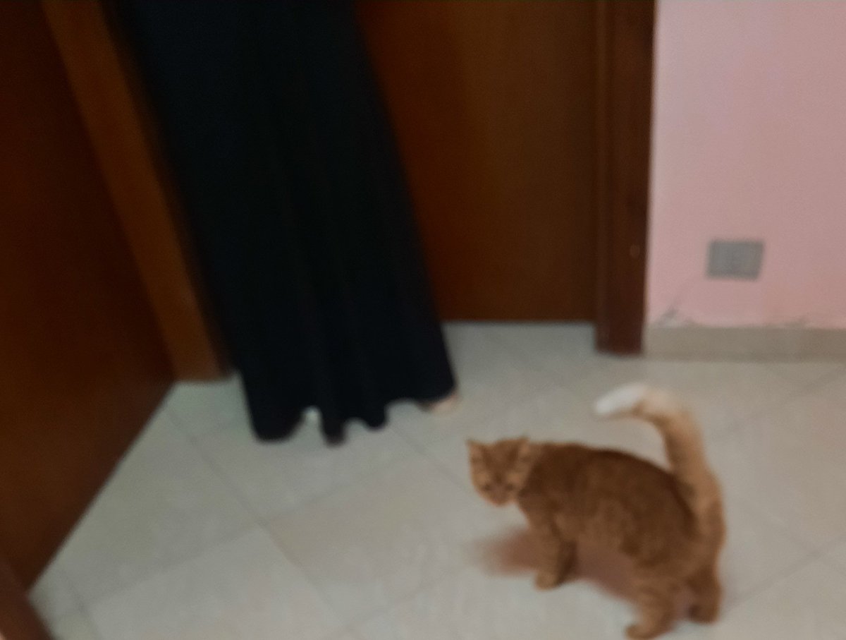 وقفت امام الباب لا تبرحه وعند خروجهم جرت وراءهم ولكنهم ركبوا سيارتهم وانطلقوا مسرعين وتركوا القطة المسكينه على هذا الحال تعيش امام العقار الذى فيه العيادة طوال الليل وبمجرد فتح العيادة تدخل لتجلس وتحوم حول الباب الداخلى للعيادة التى دخلتها هذه الاسرة وكلما اخرجناها عادت سريعا
