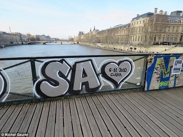 في يوم من الأيام استقيظت باريس على انهيار جزء من سياج هذا الجسر بسبب الوزن الزائد للأقفال، الأمر الذي دفع السلطات لإزالتها، لكن في كل مرة يعود السياح إلى تعليق الأقفال، لذلك عمدت السلطات عام 2022 إلى استبدال السياج الحديدي للجسر بآخر زجاجي فقرروا الكتابة على الزجاج هذه المره 🤦🏻‍♂️
