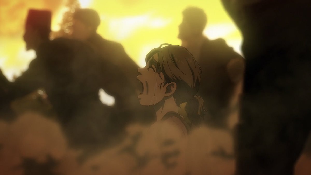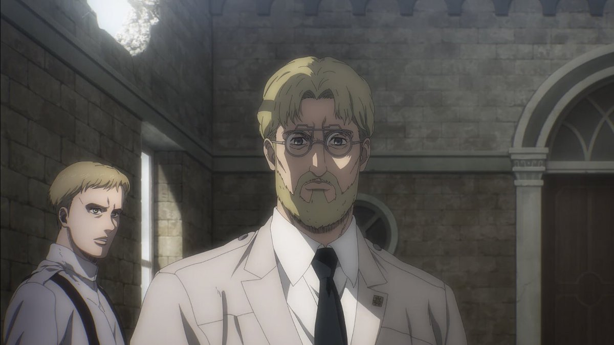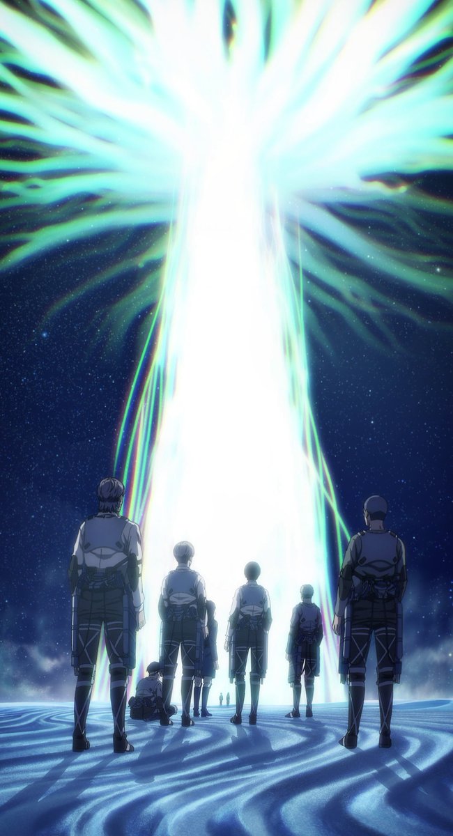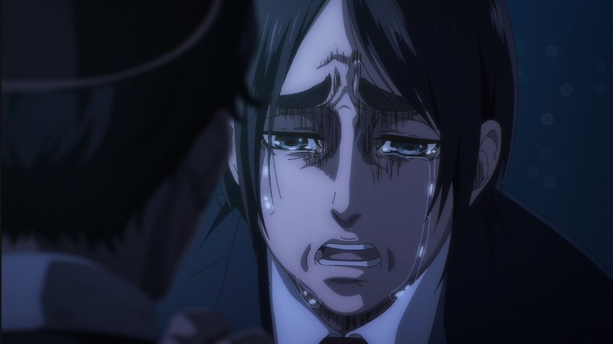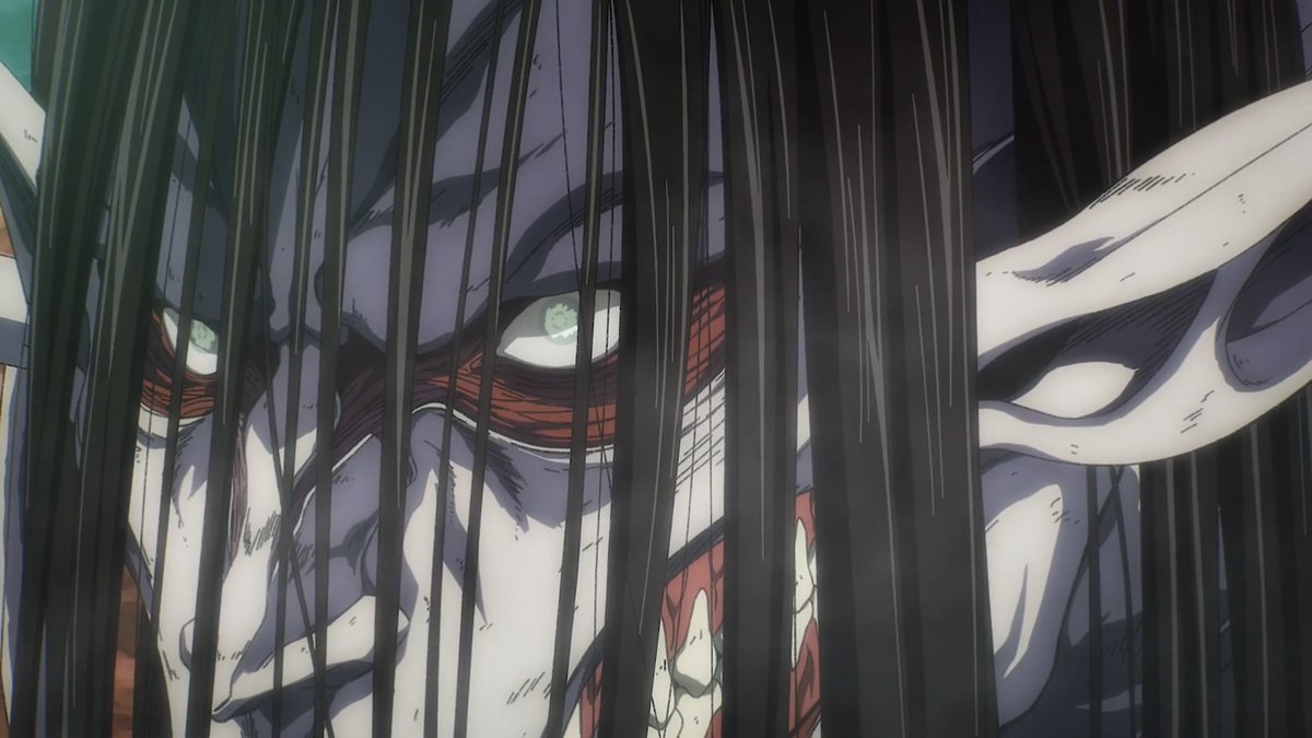 ”ما يوجد فعلًا خارج الأسوار مختلفٌ تمامًا عن العالم الذي حلمتُ به. لم يكن كالعالم الذي رأيته في كتاب أرمين. حينما علمت بأن البشرية تعيش خارج الأسوار، خاب أملي كثيرًا، أنا من أراد ذلك. أردتُ محوه كله“.