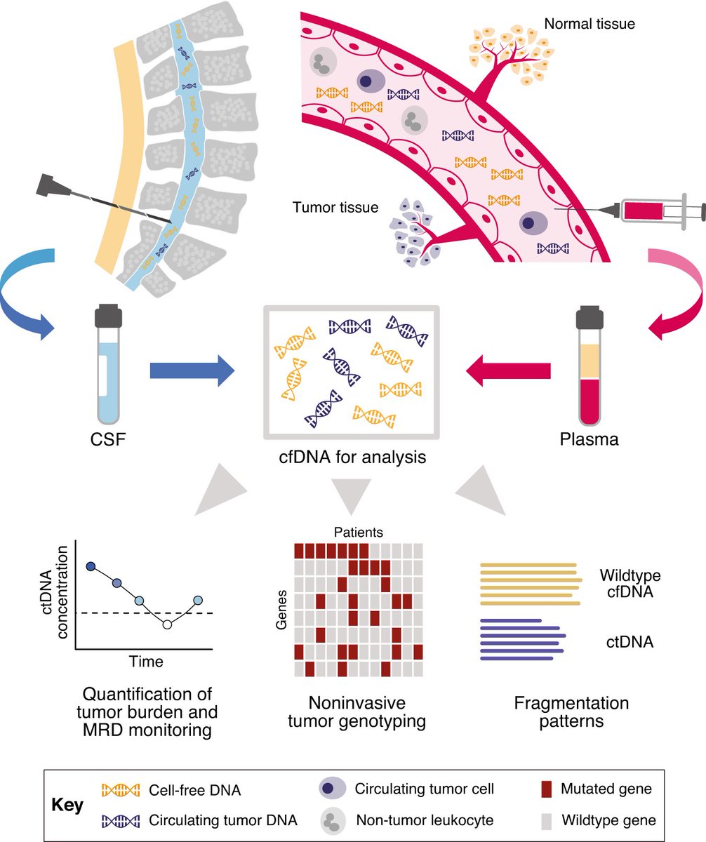 4- الكشف عن #الحمض_النووي #ctDNA في مجرى #الدم هو طريقة غير غازية (non-invasive) لمراقبة مرضى #السرطان، وله العديد من المزايا مقارنة بالطرق التقليدية مثل الخزعات (#biopsies) والتصوير (#imaging).