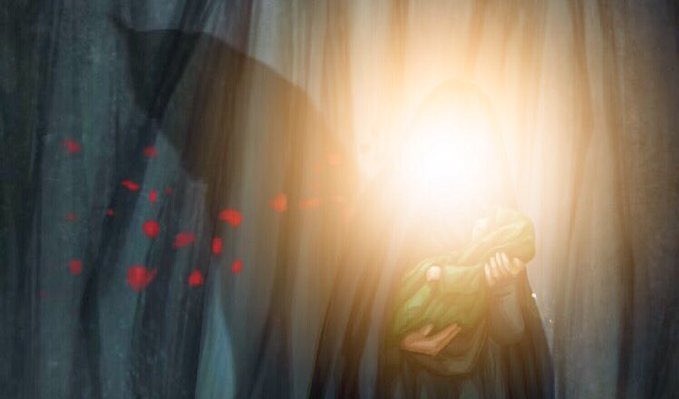 ﻗﺎﻟﺖ : ﻓﻼ ﺗﺨﻒ ،ﻣﺮﺣﺒﺎً ﺑﺎﺑﻦ ﺍﻟﺨﺎﻟﺔ ، ﻣﺮﺣﺒﺎً ﺑﺄﺑﻲ ﻋﻠﻲ ﻭ ﺃﻣﺎﻣﺔ..