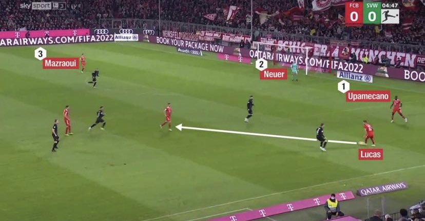 كيميتش : "اذا قام الخصم بالضغط على مانو، حينها اقوم بالاعتماد على الظهير في فريقي، إن لم يتحرك، فحينها يمكنني الاعتماد على حارس المرمى. في هذه الحالة، أتمنى أني انا من قمت بتحويل اللعب من اليسار لليمين."