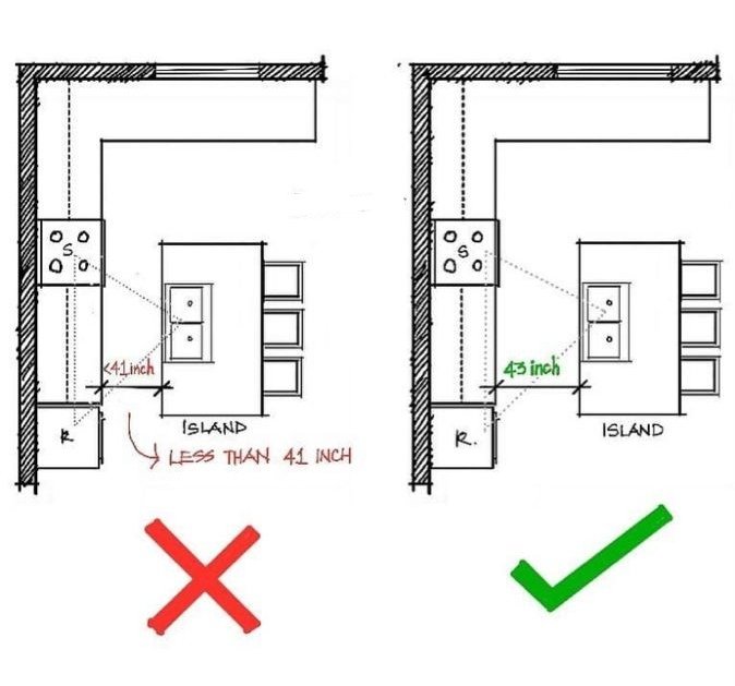ما مقدار المساحة التي تحتاجها بين الجزيرة وخزائن المطبخ؟