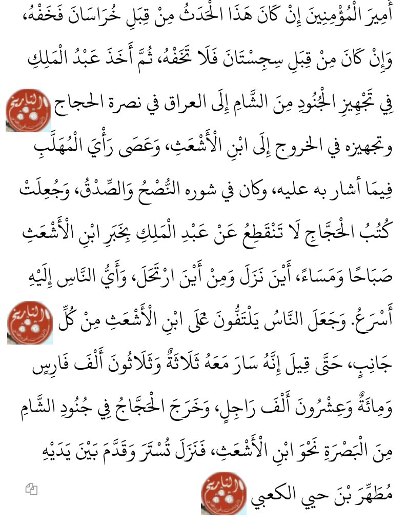🛑ثم التقى جيش الخليفة وجيش ابن الأشعث فقال القراء الذين خلعوا البيعة: أيها الناس قاتلوا عن دينكم ودنياكم.