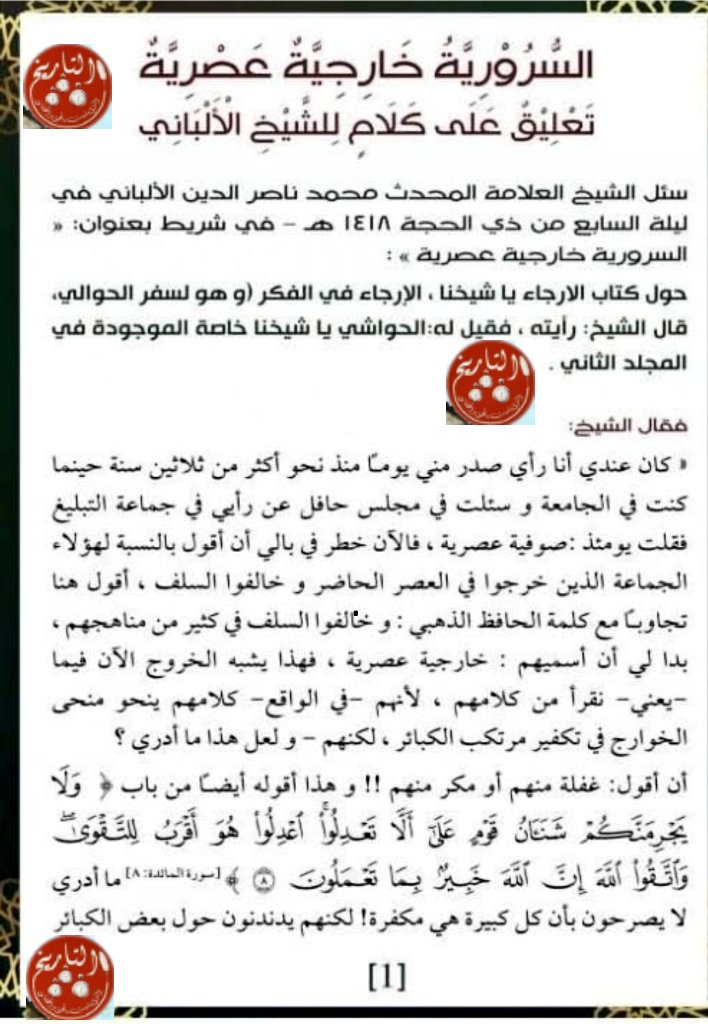 📍فتأسس التيار السروري الذي يهدف اخراج فرقة تابعة لأسس الإخوان ونشرها في المجتمع السعودي