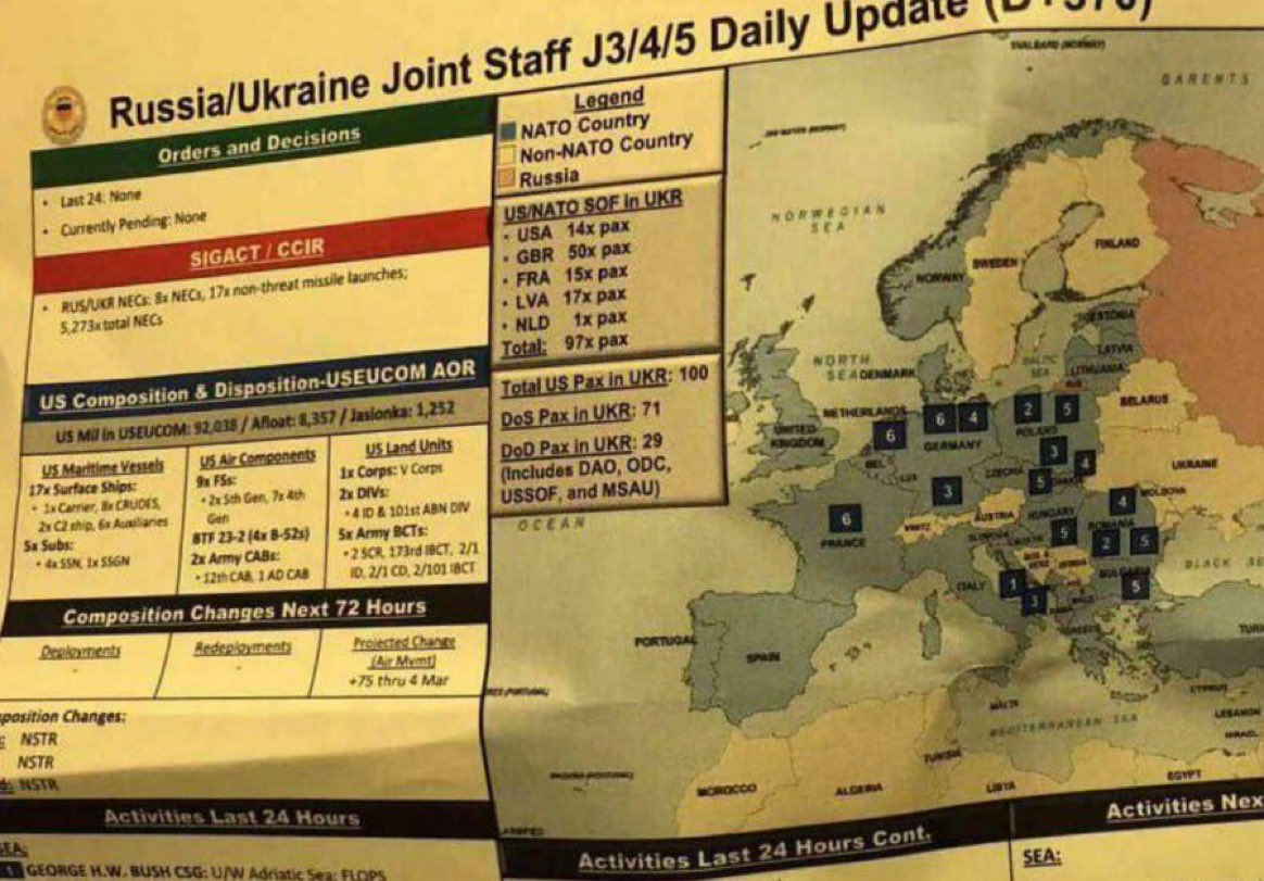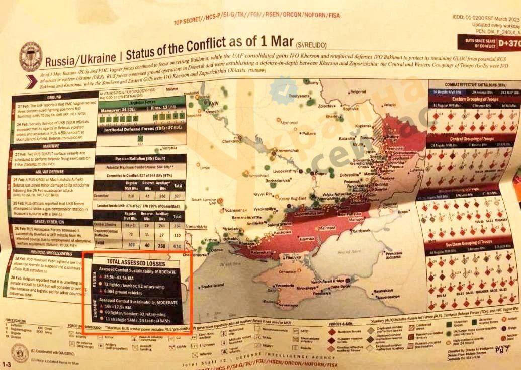 - وثيقة اخرى تكشف تجسس وكالة الاستخبارات المركزية على الحلقة القريبة من الرئيس الاوكراني زيلينسكي.