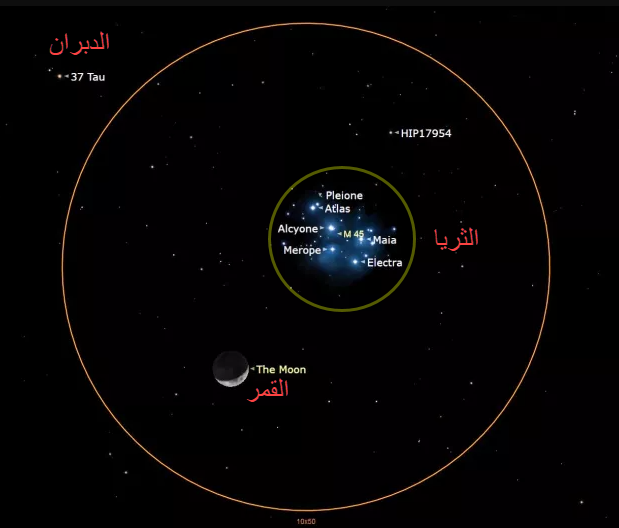 للدبران أسماء عديدة: منها عين الثور، قلب الثور، المُِجدح، التابع، التويبع، حادي النجم، وتالي النجم =