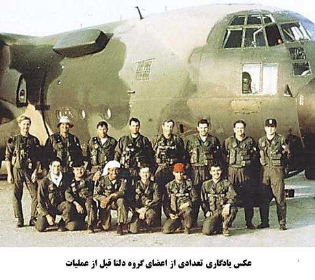 علي متن طائرتي نقل ذات محركات مروحية طوربينية من طراز «سي - 130» في حين كلفت مروحيات من سلاح مشاة البحرية «المارينز» بنقل جنود قوة العمليات الخاصة «دلتا» من المهبط الجوي المؤقت في الصحراء الي طهران، ودخلت هذه المروحيات الأجواء الإيرانية قادمة من البحر.
