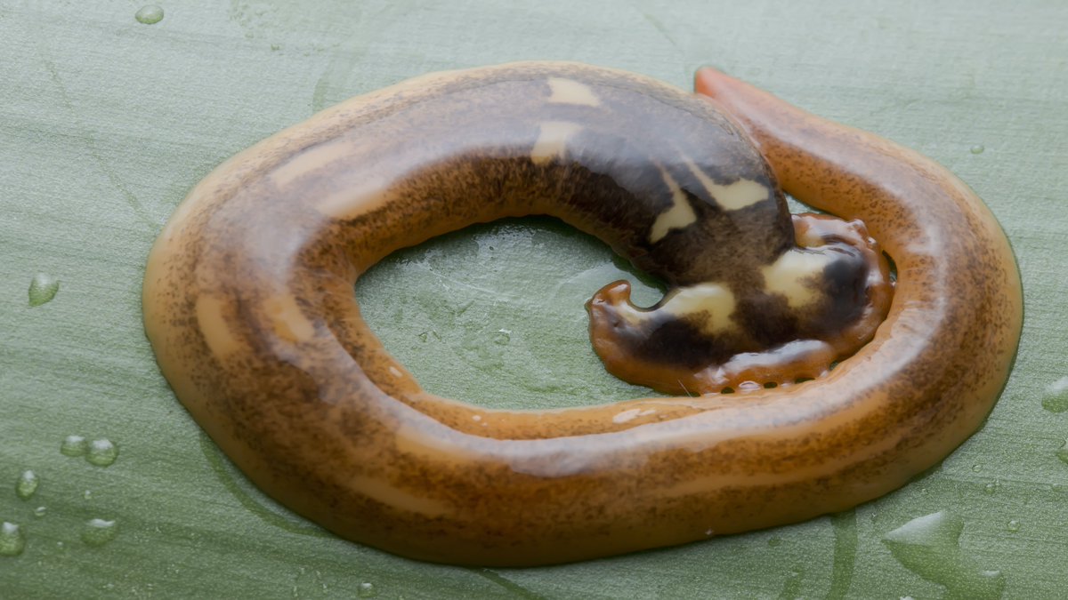 الدودة تستخدم رأسها في تثبيت فرائسها ، ثم تفتح فمها على مصرعيه بزاوية 270 درجه