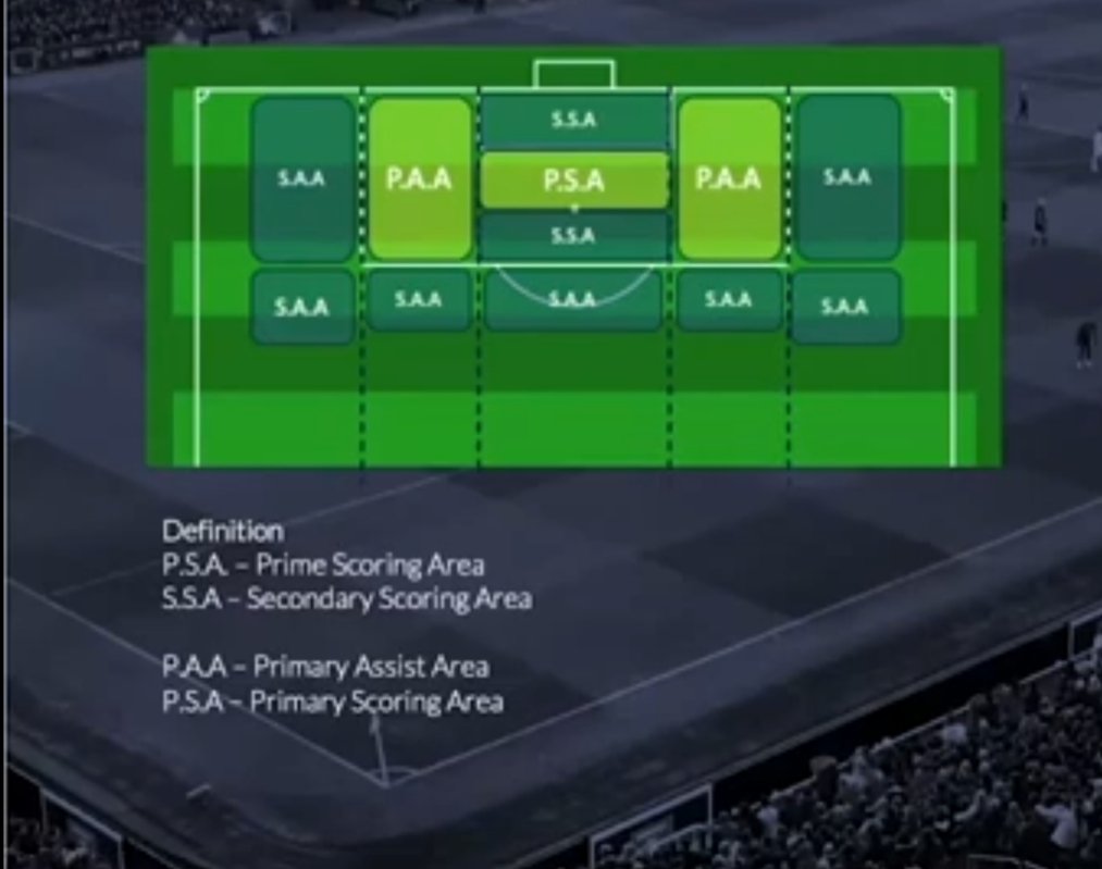 - مثلا : رقم (1) هو عندما يكون الفريق مستحوذا على الكرة في الثلث الأخير ، الهدف : هو التسجيل