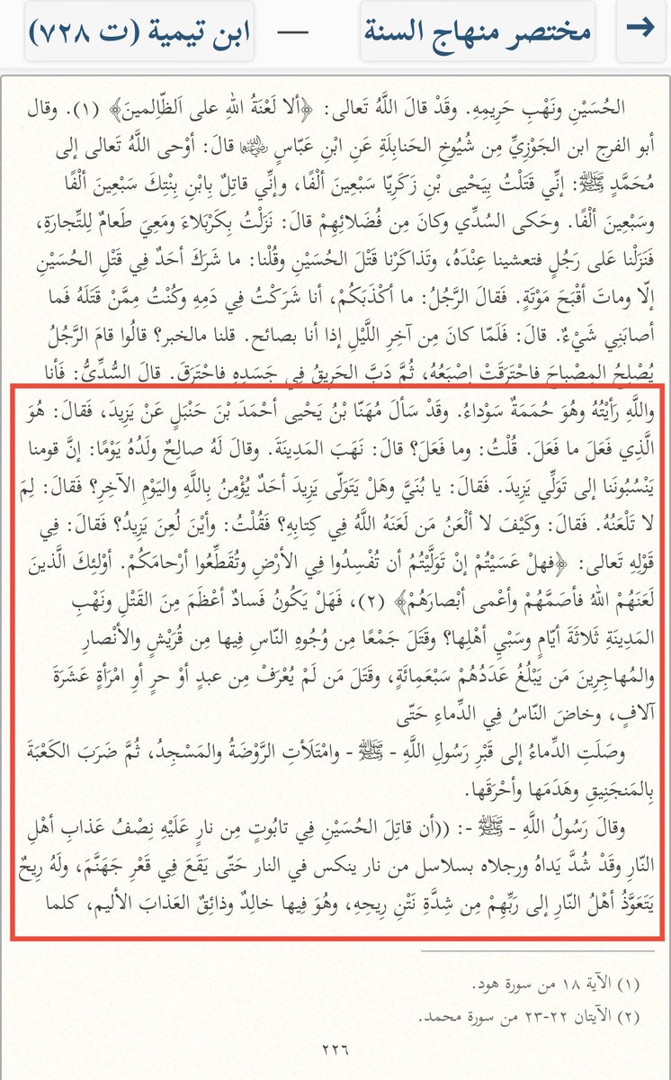 فكيف يتأول لقاتل الحسين ﷺ بالرغم من وجود هذه النصوص الصحيحة وغيرها في فضله ومصيره وحال النبي ﷺ بمقتله حياً وميتاً ؟