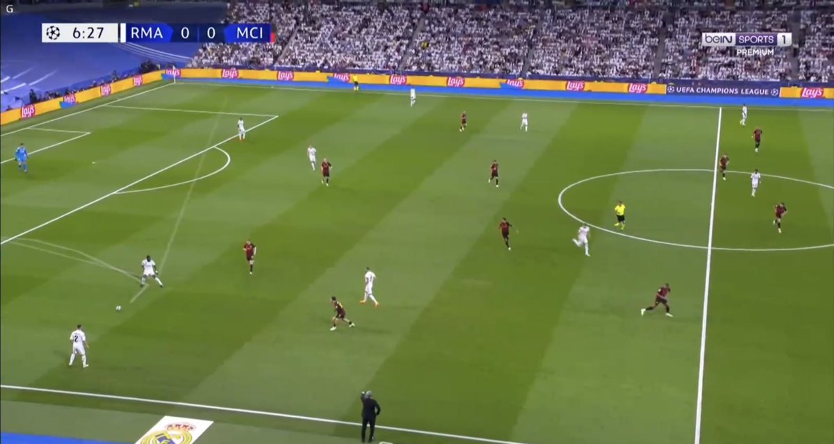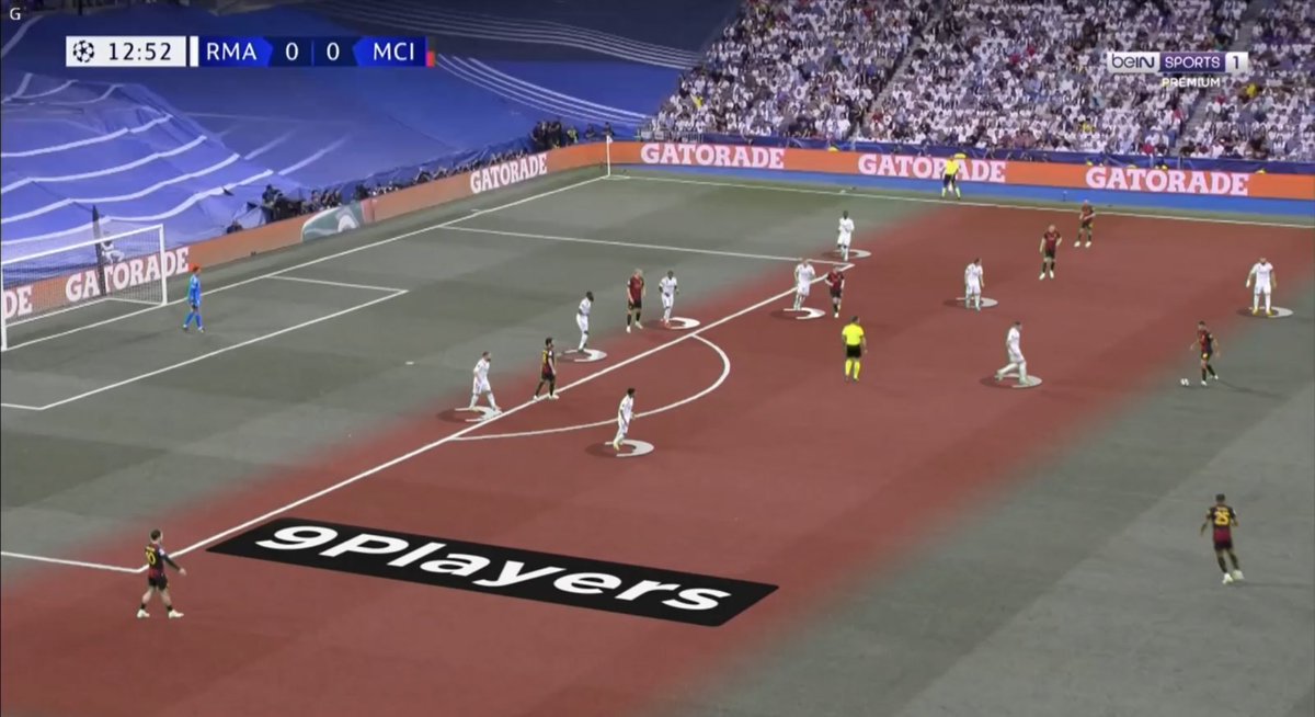 ويواجه مودريتش رودري او ستونز، وعجبني جدا دور فينسيوس ورودريغو الدفاعي حركيتهم مميزة جدا بمساندة الوسط او الاظهرة والهدف لتضيق العمق